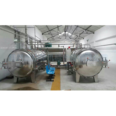 殺菌鍋的原理:把熱水罐事先加熱到所需溫度,通過循環水泵將鍋內熱水進行循環加溫,使鍋內產品在熱水噴淋和蒸汽的條件下進行高溫滅菌,使產品能保持原有的色澤、口味和營養成分,且殺菌時間能提高一半的效率,同時節約能源。