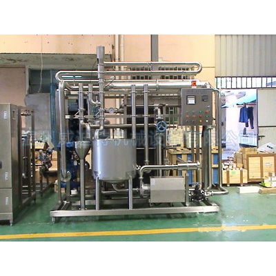 滅菌機由平衡罐輸入到換熱器內,在加熱部分與殺過菌的熱物料進行換熱后使冷物料溫度升到預定值,然后通過由蒸汽加熱的水間接加熱到120℃,物料在持溫管中維持所要求的溫度一段時間進行超高溫殺菌,從持溫管出來后與進入機內的冷物料進行熱交換,后在冷卻段冷卻到預定的出口溫度,整個過程均在封閉狀態下進行,達到保證物料的生物穩定性的目的。